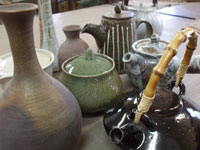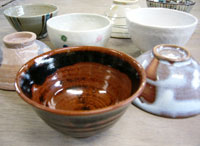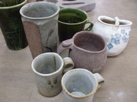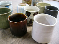 湯呑を作ることで上方に伸ばす技術を学びます。工程が進むことで底に指が届かなくなるので工夫が必要です。 湯呑にもさまざまな形があります。お好みに合わせて大きいもの、ほっそりしたもの、くぼみがあるものが作れます。 |